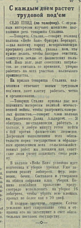Грянула Великая Отечественная. «Тысячи трудящихся республики с оружием в руках пошли бороться против бешеного германского фашизма», – писала «Правда» 15 июля 1941 года. «Комсомольская правда» от 24 августа 1941-го рассказывала о мученической смерти от рук фашистов комсомольца Генриха Гофмана. Уроженцу республики Роберту Клейну было присвоено звание Героя Советского Союза. И не только ему. А 28-го августа вышел пресловутый Указ о депортации...